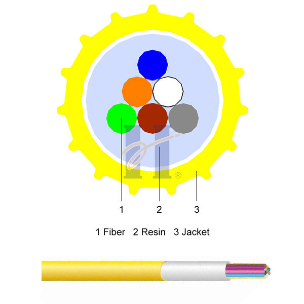1. G652D 섬유 2. 수지 3. 충전기 섬유 4. 홈 5. HDPE 덮개